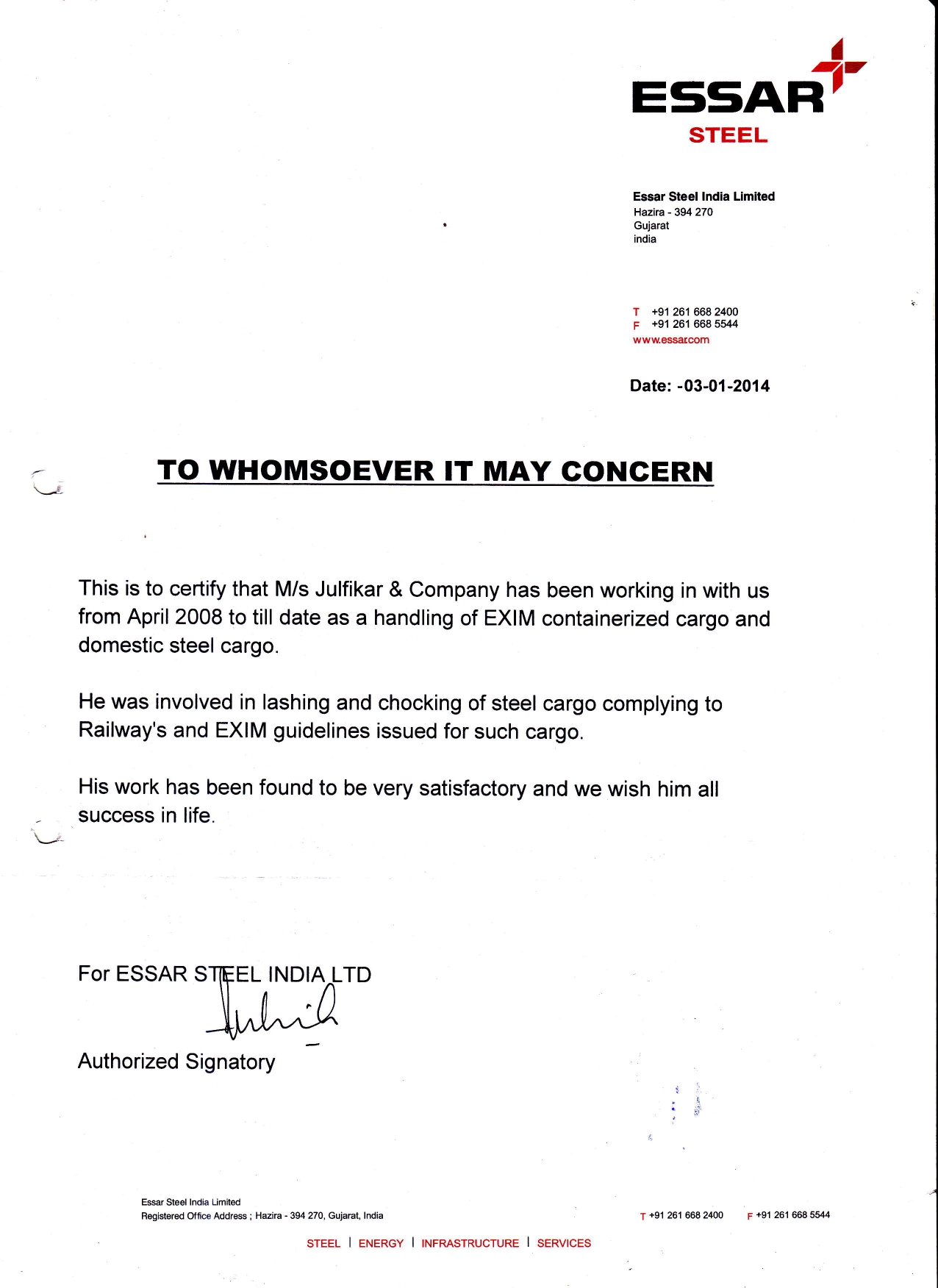 This is to certify that M/s Julfikar & Company has been providing their service to